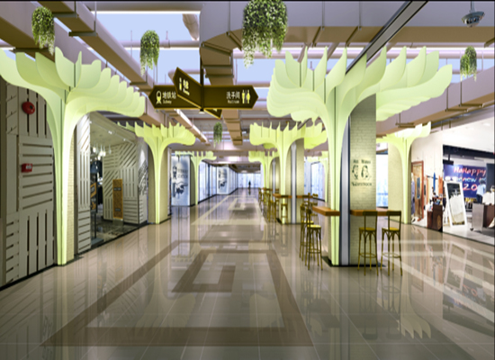 在空間設(shè)計(jì)上、不論是各通道出入口、或是十字交匯、又或地下一二層間的連接點(diǎn),處處都是注重增強(qiáng)街區(qū)的趣味性、感知性及動(dòng)態(tài)效果,以達(dá)改變傳統(tǒng)地下商業(yè)街的“壓抑、擁擠、無(wú)趣”印象。同時(shí)我們還通過(guò)改造排煙系統(tǒng)、空調(diào)系統(tǒng)、新風(fēng)系統(tǒng),增設(shè)植生墻、背景音樂(lè)、中庭空間等方式改善地下空間環(huán)境,給地下空間“自由呼吸”的舒適感覺。大量運(yùn)用LED燈光,達(dá)到節(jié)能環(huán)保與空間明亮的同步效果。營(yíng)造百變空間讓消費(fèi)更加時(shí)尚。